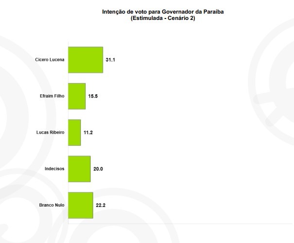 A comparação com a pesquisa anterior, de setembro (divulgada em 08/09), ressalta o potencial de crescimento de Lucas Ribeiro. Naquele levantamento, ele aparecia com 11,2% contra Cícero Lucena (31,1%) e Efraim Filho (15,5%).